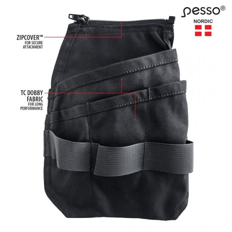 Hanging high strength pocket with Cordura for tools, right. 88/12 TC DOBBY fabric volume pocket. The pocket has several additional sections. The pockets are fastened with the ZIPCOVERTM system for a convenient and secure fastening. ID card holder The pockets are suitable for Pesso pants - KD215 Twill Stretch trousers