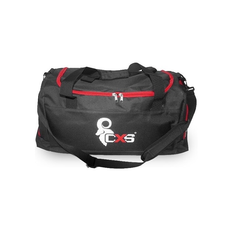 Spacious, black sports bag 105L with red zipper, load capacity - 30kg.