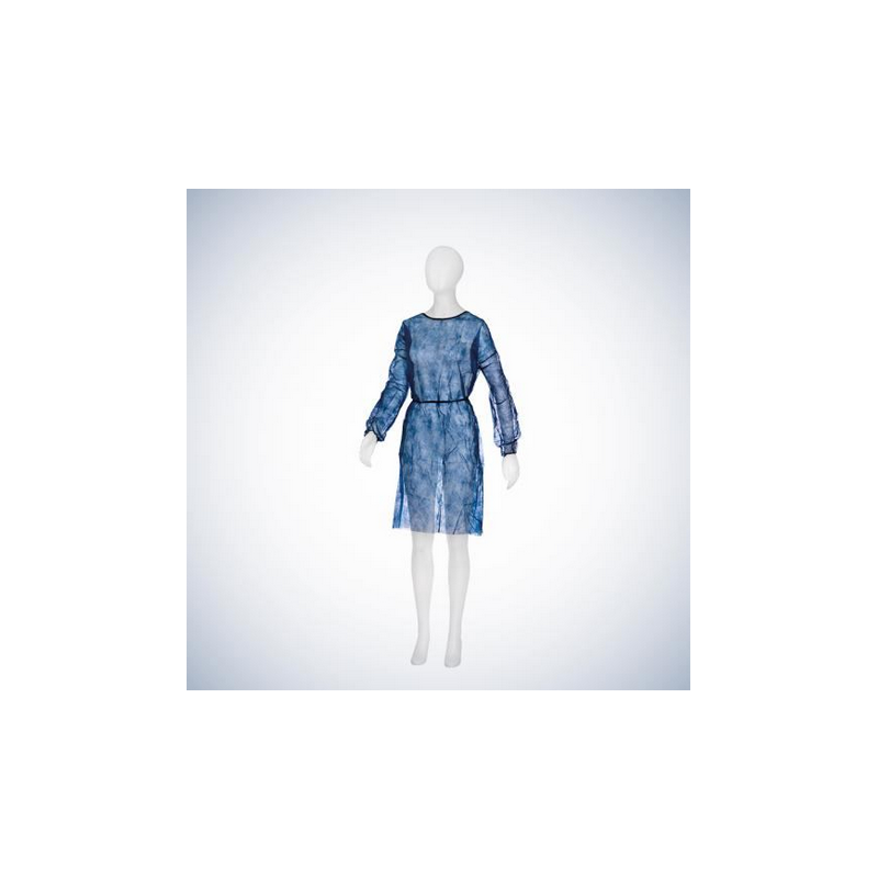 The Med-Comfort PE gown is designed for use by medical staff and visitors. Made of polyethylene, has a collar like a shirt, and has press buttons on the front.Price is for 1 piece, pack of 50 pieces.