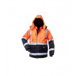 High visibility jacket with extended back, made of Softshell fabric, which is waterproof, windproof, breathable and extremely comfortable. Heated inner back. Removable and adjustable hood. In the front, the jacket closes with a zipper up to the top of the collar. The jacket has an inside pocket, an outside chest pocket and two waist pockets with zippers....