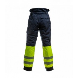 Warm, breathable and waterproof semi-jumpsuit with a back cover. Made of stretchy double-layer fabric that prevents movement during operation. A special breathable PU membrane allows the body to "breathe" by evaporating water vapor outwards. Adjustable strap length. The spacious side and back pockets make it easy to place work tools. Extra side phone pocket and knee pockets.
