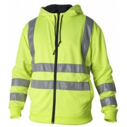The Winslow HI-VIS hoodie has a long front zipper and two side pockets. Reflective stripes are on the front, back and sleeves.