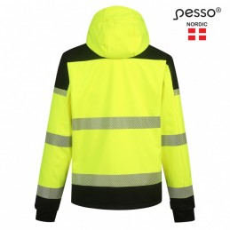 Water-repellent, windproof and breathable Softshell Pesso jacket. 4-way stretch material for maximum comfort. Waterproof RIPSTOP Softshell. 4 - way stretch fabric. TPU membrane. Cozy and warm fleece lining. Zippered hood. Velcro adjustable sleeves.Two waist pockets, chest pockets.