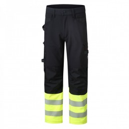 The durable 4-way stretch fabric combined with Hi-VIS combines flexibility, style, and safety. Modern fit, removable tool pockets and Cordura® reinforced knee pockets - All in one! The unbeatable ease of movement to the limits.