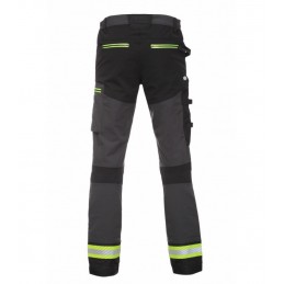 Men's working pants in combination with hi-vis fabric in the bottom of the legs and 2 reflective stripes.