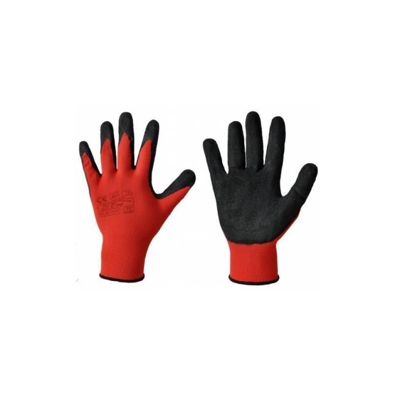 Gloves resistant to mechanical action. The hand of the gloves is completely covered with a black layer of latex. Fingers partially coated with a layer of latex. Flexible bracelet. Ideal for loading and construction work. Catch up very well with dry and humid surfaces. Price is per piece. Pack of 12 pcs.