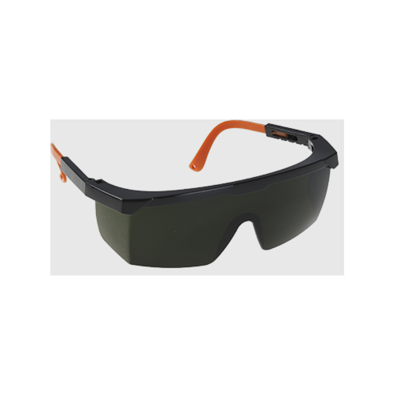 Welding safety glasses with green lenses and black frame, multifunctional with 5 lens side protection and adjustable handle for perfect comfort.