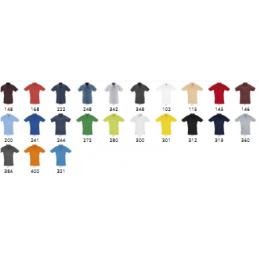 Pegaso polo shirts are available in a wide range of colors. They have a 3 button closure, a collar and cuffs at the edges, a seamed collar, and a sewn-in pocket.Material density - colored - 180 gsm, white - 220 gsm.