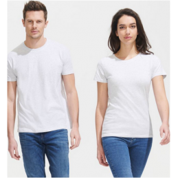 Unisex T-shirt with short sleeves. Round two-layer collar. Without side seams. Density: 155 gsm.