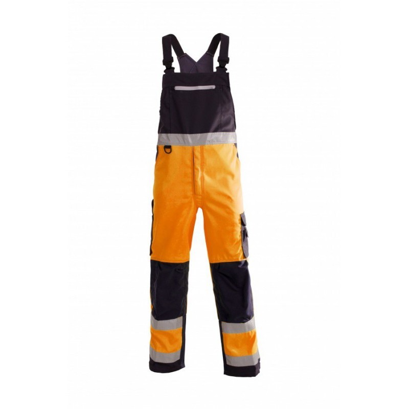 Windproof and waterproof, breathable HI-VIS winter semi-overalls with reflective tapes. Modern and comfortable model that does not restrict movement. Double seams provide extra strength.