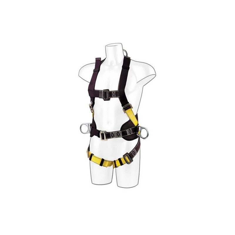 Drošības sistēma ar muguras jostu. Drošības sisstēma ar 1 aizmugures, 2 sānu D cilpām un pagarinātu stiprinājuma siksnu ērtākai lietošanai. Drošības sistēmu iespējams izmantot (stiprināties) gan no priekšas, gan np aizmugures. Svars: 1460g