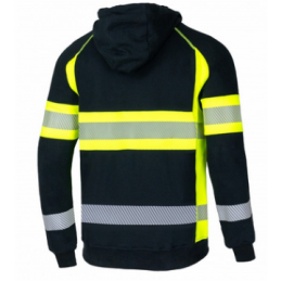 Izgatavots no 100% kokvilnas trikotāžas (320 g/m²), kontrastējošais fluorescējošais materiāls no 100% poliestera (320 g/m²).