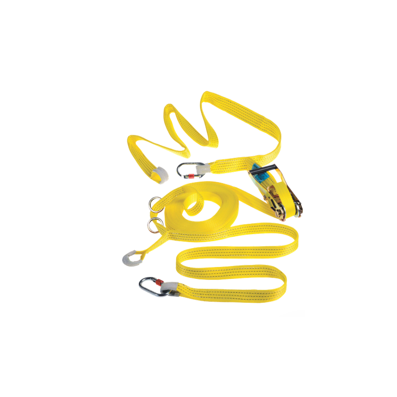 2 līdz 20 metrus gara pagaidu glābšanas lente, kas ļauj vienlaikus nostiprināt 2 lietotājus, ļoti viegli uzstādāma ar spriegotāju
