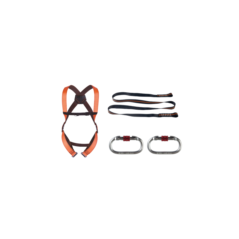 Ergonomiskās siksnas ar bīdāmu D-gredzenu. Ietilpst elpojoša kontūrveida mugursoma, divi sānu gredzeni un plakanas jostas, kuras ir viegli lietojamas un drošas. Izgatavots izmantojot poliestera siksnas, kas nodrošina maksimālu izturību. Viduklis, krūškurvja un kāju regulatori nodrošina lielisku piemērotību un ērtību.