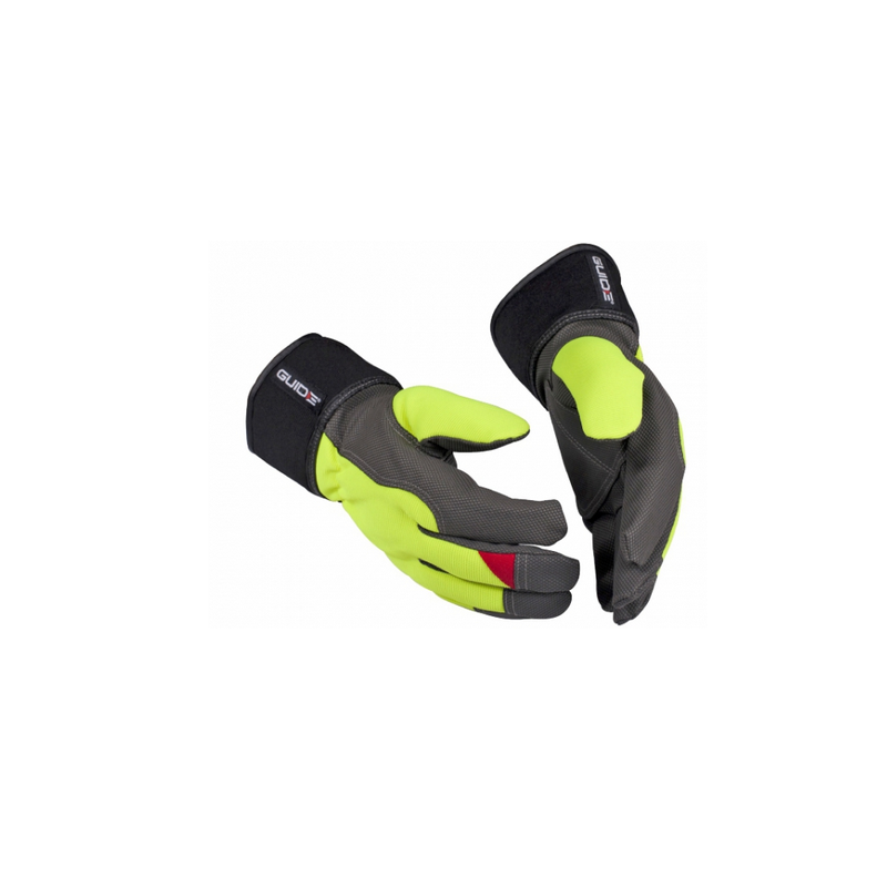 Guide 5148W ir ergonomiski ziemas darba cimdi ar izturīgu sintētisko ādu un ūdeni atgrūdošu PU plaukstu, kas nodrošina drošu satvērienu. Cimdiem ir sintētiska elastīga aizmugure hi-viz dzeltenā krāsā labākai redzamībai darbā. Plauksta un pirkstu gali pastiprināti, papildus nodrošinot aizsardzību un komfortu.